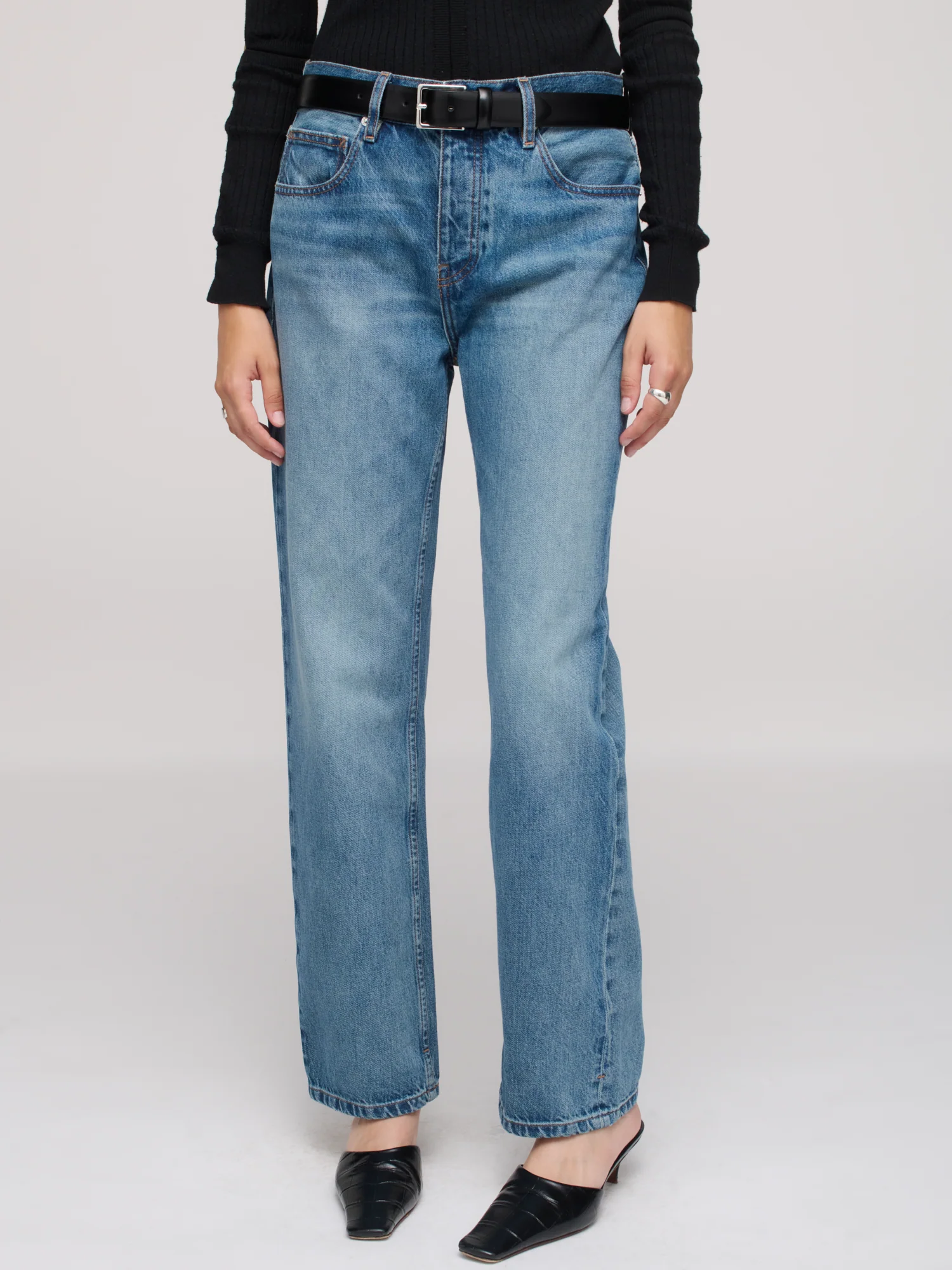 Calla Mid Rise Straight Ankle fits mid rise with a button fly and a vintage inspired straight leg that cuts at the ankle. Made with rigid Italian denim in 100% organic cotton, finished with a low-impact wash for a lighter footprint. Produced in Paraguay by BDA.
