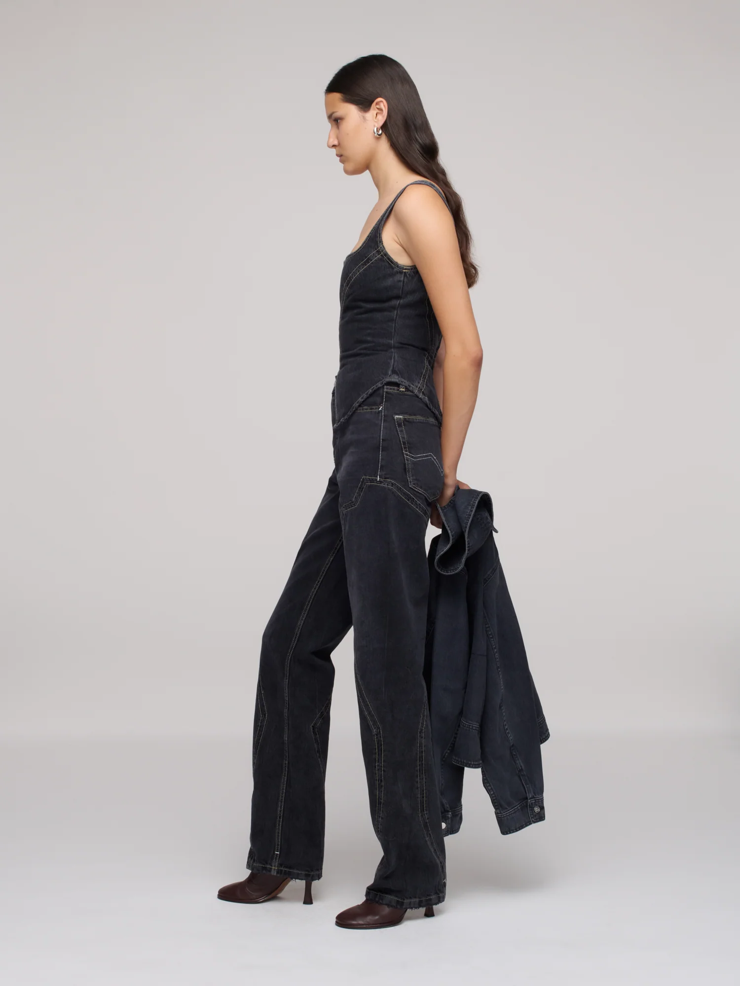 The Broken Corset, contoured throughout, was created with all bodies in mind. Fitted to the body with a square neck, back zip, seam detailing and fully lined for comfort. Designed to hold you like a corset - snug when you zip it up, but comfortable once you're in. Cut from rigid Italian denim in 100% organic cotton and washed with a low-impact process that reduces water and chemical use. Produced in Paraguay by BDA.