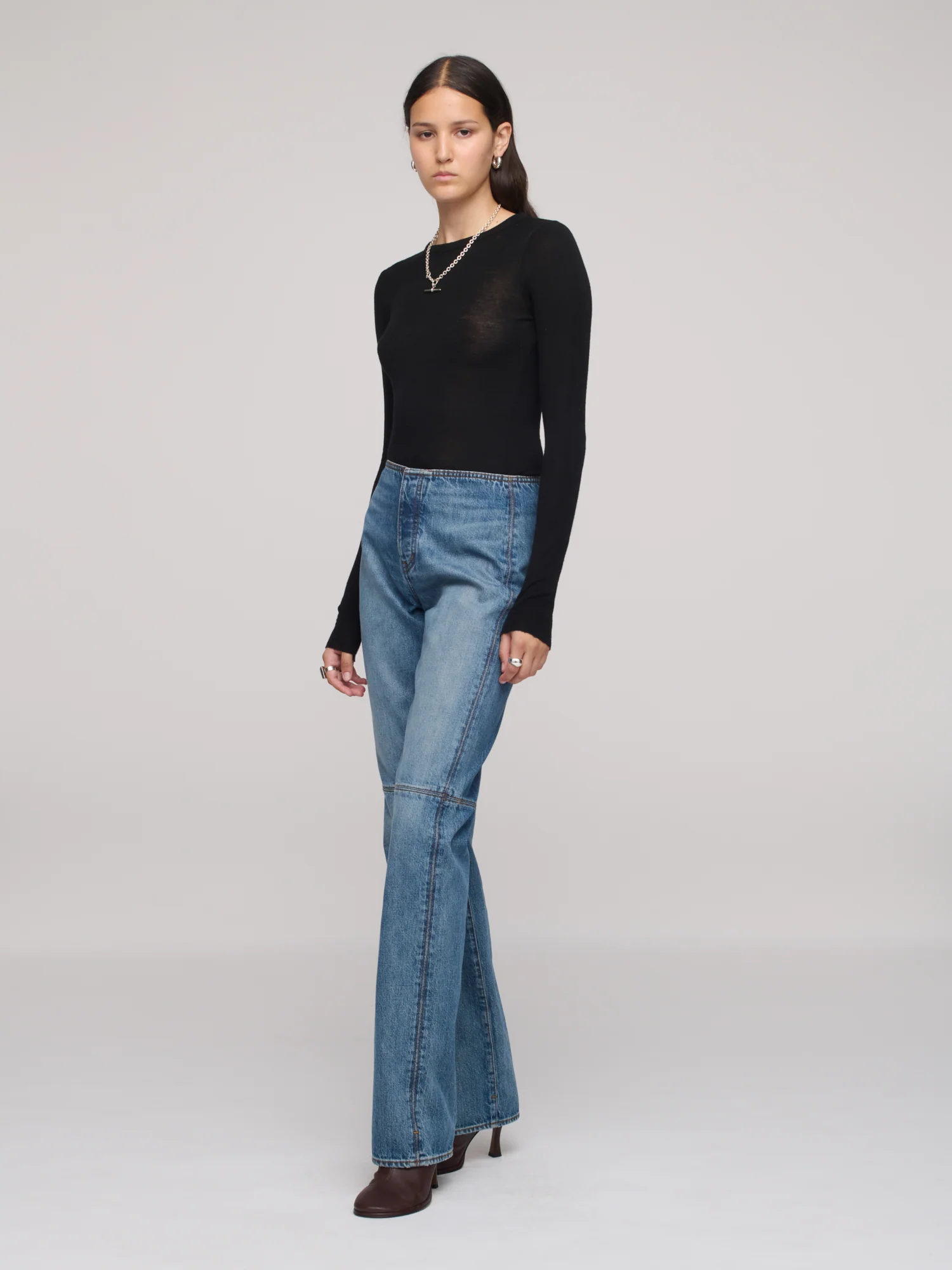 Alley fits super-high rise with a button fly, slim through the thigh, and a straight full-length leg. Fits true to size. This style may feel snug at first but will soften and mould with wear. Size up for a looser fit. Made with Italian rigid denim in 100% organic cotton, finished with a low-impact wash for a lighter footprint. Produced in Paraguay by BDA.