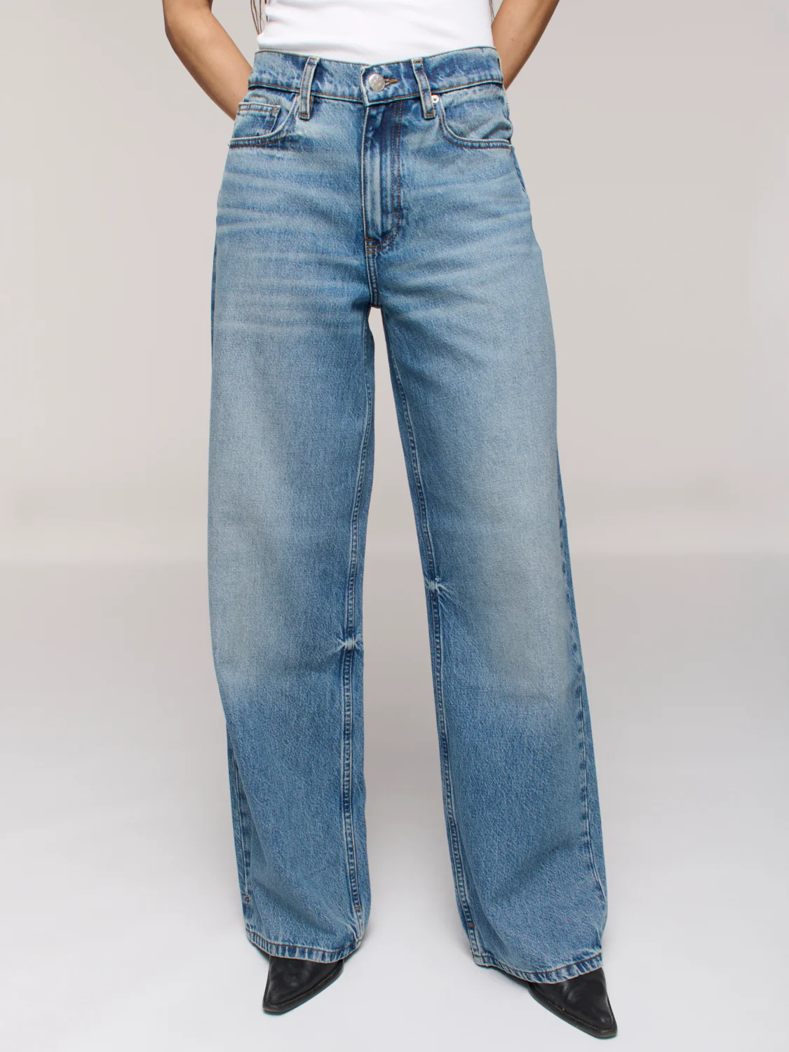Sling fits mid rise with a zip fly and a wide, straight full-length leg. Fits true to size. Made with Italian rigid denim in 100% organic cotton, finished with a low-impact wash for a lighter footprint. Produced in Paraguay by BDA.