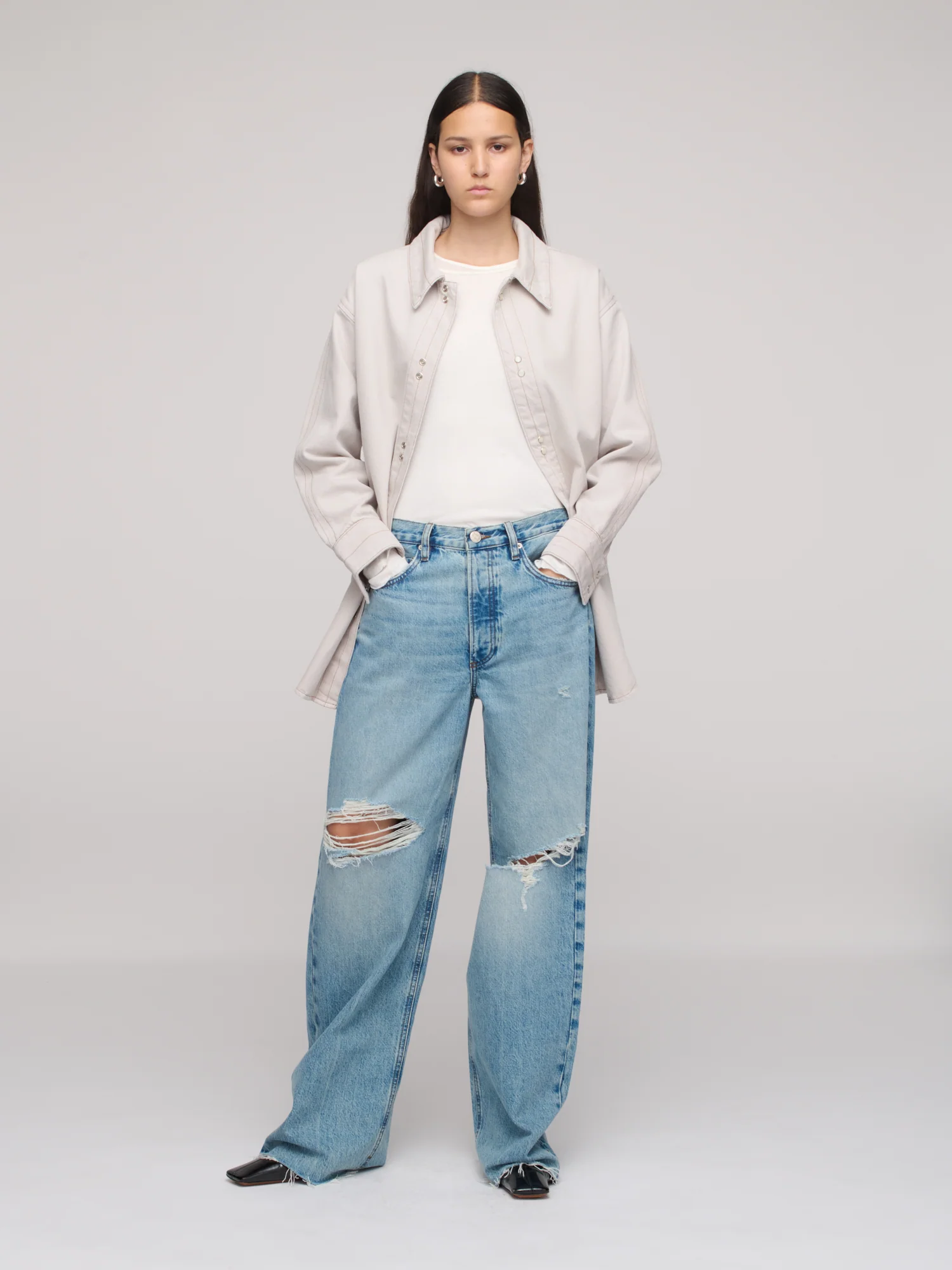 The Stack Shirt fits oversized with a full length sleeve, side splits at the seams and branded shank fastening. Cut from rigid Italian denim in 100% organic cotton and washed with a low-impact process that reduces water and chemical use. Produced in Paraguay by BDA.