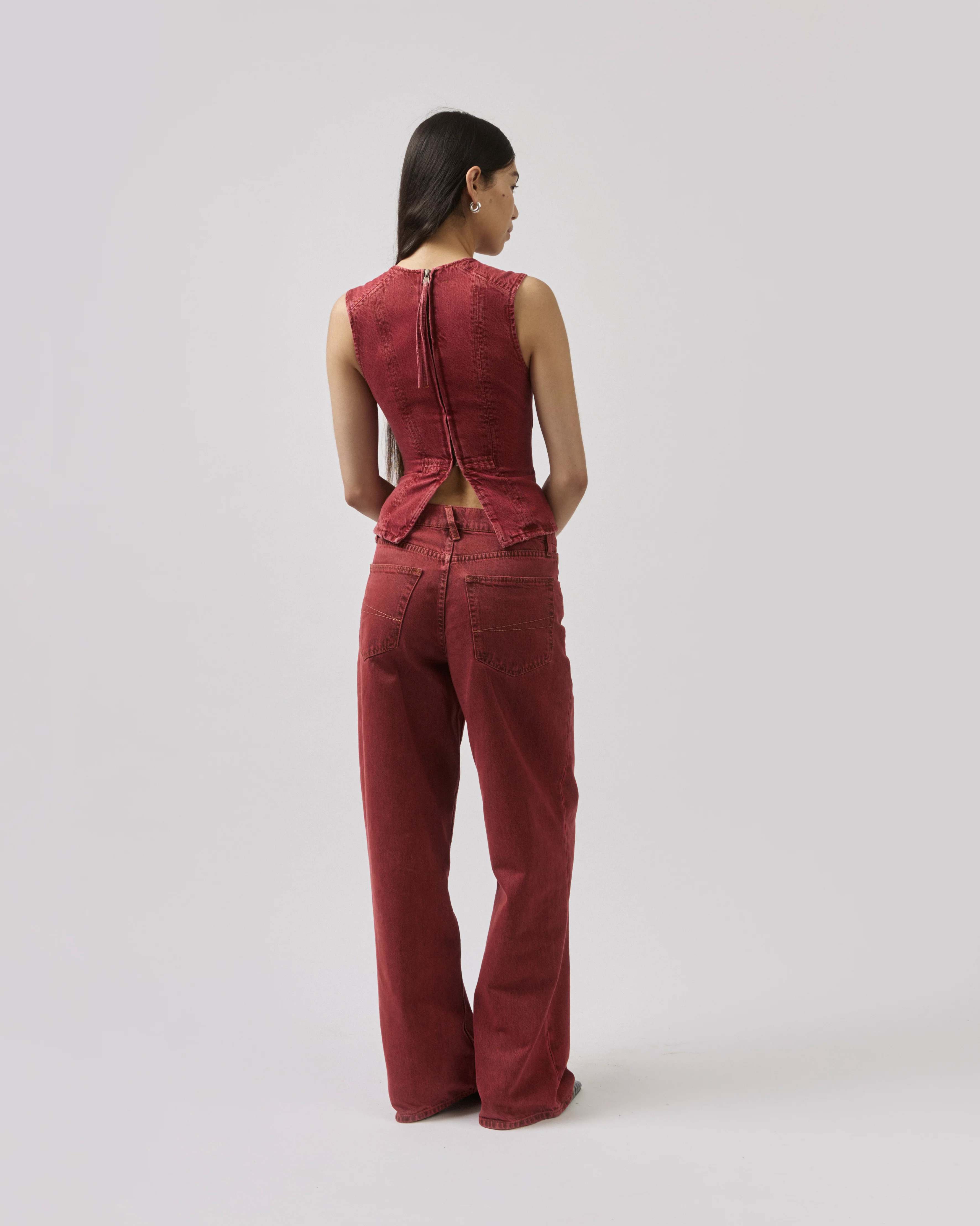 Our Straddle Top features a square neck with front seam detailing, back zip and hits just above the hip. Cut from rigid Italian denim in 100% organic cotton and washed with a low-impact process that reduces water and chemical use. Produced in Paraguay by BDA.
